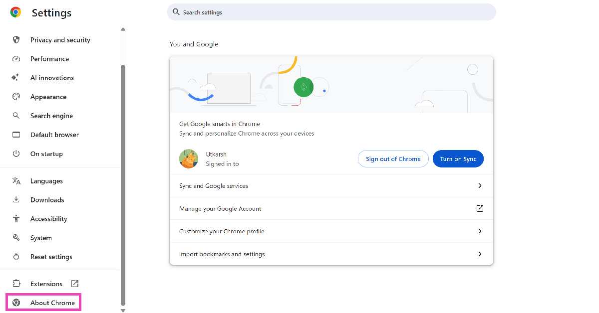 3. Adım:SeçmeChrome hakkındaKenar çubuğu için.