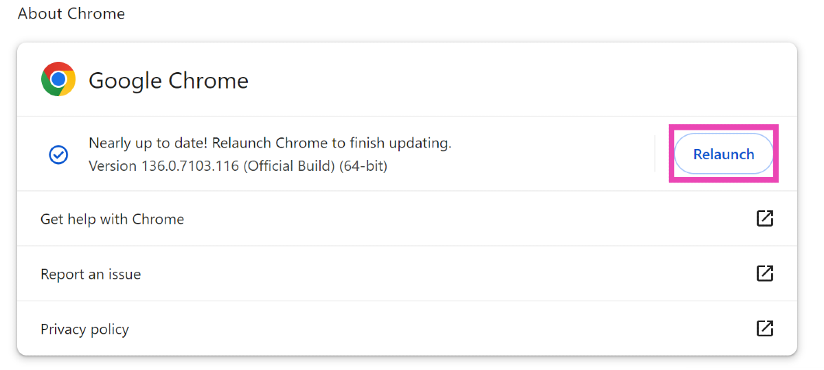 4. Adım:Google Chrome, bekleyen güncellemeleri otomatik olarak indirecektir. Güncellemeler indirildikten sonra,tekrar başlatWeb tarayıcısı.