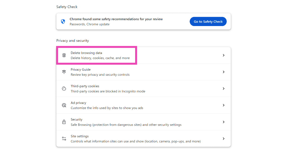 2. Adım:Gidip gelmekGizlilik ve Güvenlik.