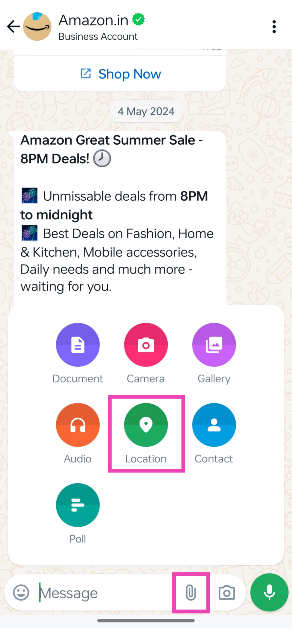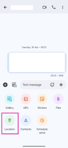 2. Adım:Vurmakek simgesiMesaj kutusunda ve seçinKonum.