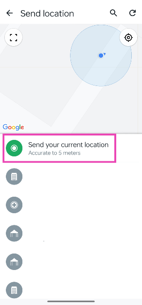 4. Adım:DenemekMevcut konumunuzu gönderin. Hareket ediyorsanız, dokununCanlı Konumu Paylaşın.