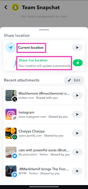 1. Adım: LansmanSnapchat ve konumunuzu paylaşmak istediğiniz kişiyle konuşmayı açın.