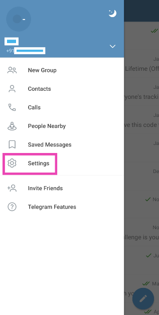 1. Adım:Telgraf başlatın ve dokununHamburger menüsüekranın sol üst köşesinde.
