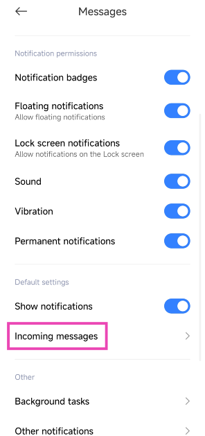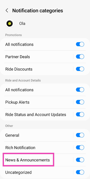 4. Adım:İçin geçiş anahtarından emin olunBildirimleri Gösteraçık ve dokunulurBildirim Kategorileri.