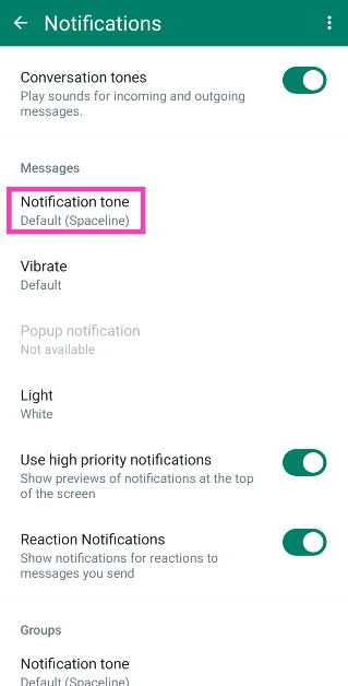 Uygulama içi ayarları kullanarak WhatsApp için farklı bir bildirim sesi ayarlayın