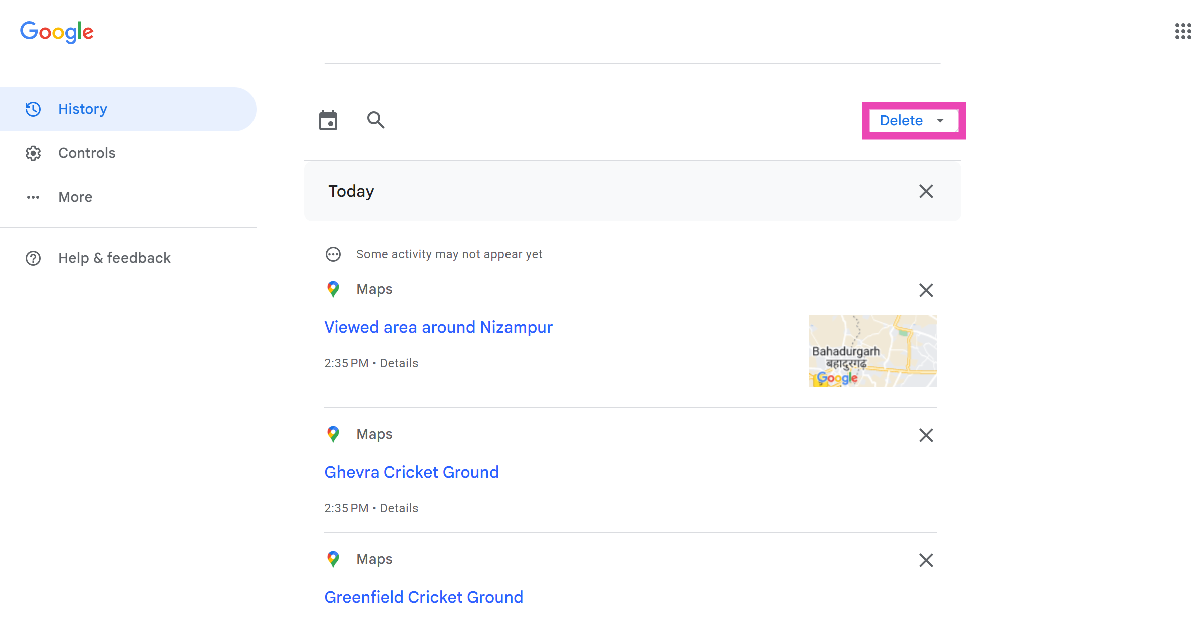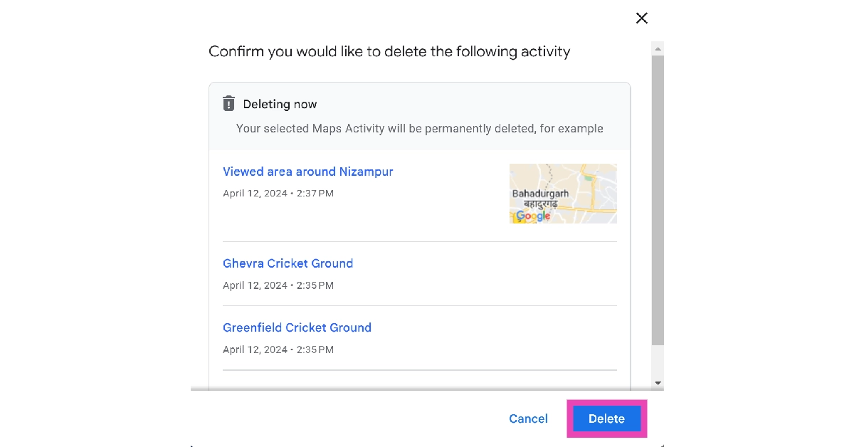 Adım 5:Vurmakçapraz simgeBir konumun yanındakaldırmakGoogle Haritalar geçmişinden.