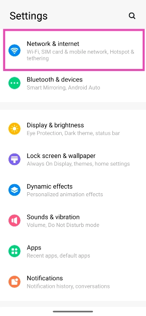 1. Adım:Gidip gelmekAyarlarve seçAğ ve İnternet.