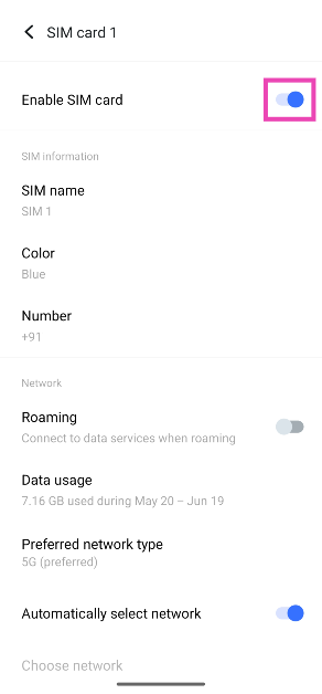 4. Adım:Geçiş anahtarını kapatınSIM kartı etkinleştir. Birkaç saniye bekleyin, sonra tekrar açın.