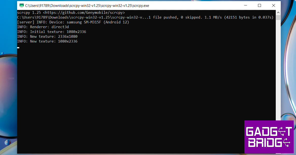 Adım 11:Scrcpy, Android akıllı telefonunuzu algılayacak ve ekranını Windows cihazınızda yansıtacaktır.