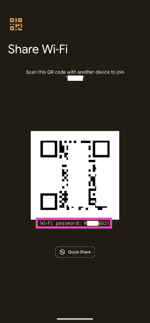 4. Adım:.WiFi şifresiQR kodunun hemen altında görüntülenecektir.