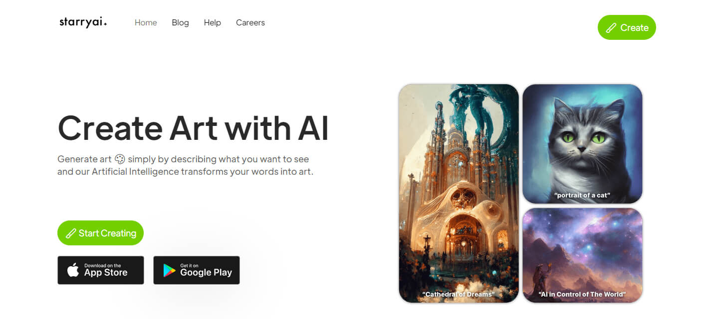 Dall-e jeneratörü gibi, sadece bir metin istemine girmeniz gerekir ve saniyeler içinde Starryai, fikirlerinizi çarpıcı sanat eserlerine dönüştürür.