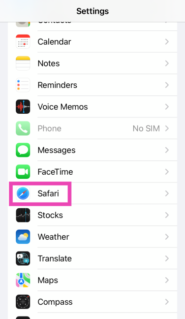 1. Adım:Gidip gelmekAyarlarve seçSafari.