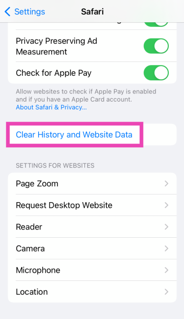 Gidip gelmekAyarlar> Safarive tarayıcının önbelleğini temizlemek için net geçmiş ve web sitesi verilerine dokunun.