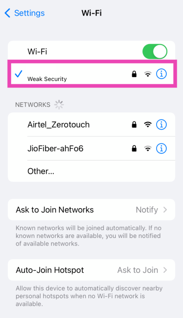 2. Adım:VurmakBen ikonBağlı WiFi ağının yanında.