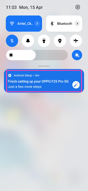 1. Adım:Durum çubuğundan aşağı kaydırın veAndroid Kurulum Bildirimi.