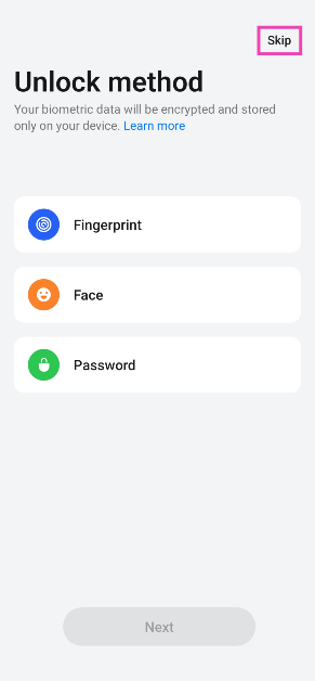 4. Adım:DenemekAtlamakEkranın sağ üst köşesindeKilit açma yöntemisayfa.