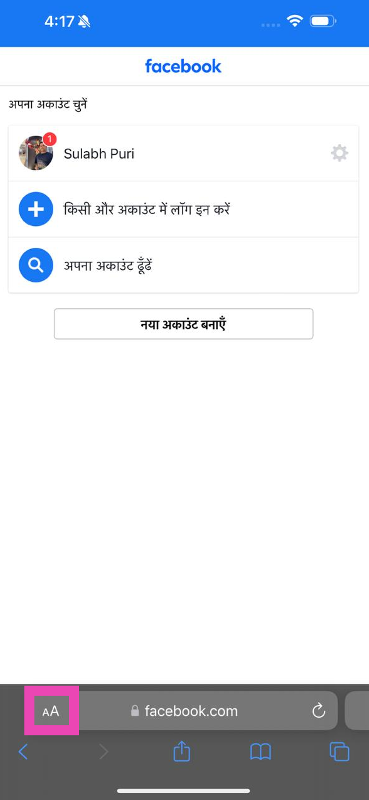 3. Adım:DokunAA simgesiadres çubuğunun yanında.