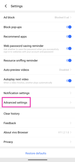1. Adım:Öğle yemeği.Yerel web tarayıcısıVivo/iqoo telefonunuzda.