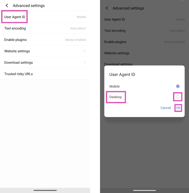 Adım 6:DenemekKullanıcı Aracı Kimliğive seçMasaüstü. VurmakTAMAM.