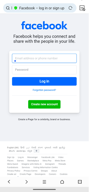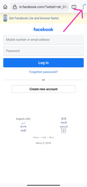 2. Adım:Gidip gelmekFacebook'un resmi web sitesi.
