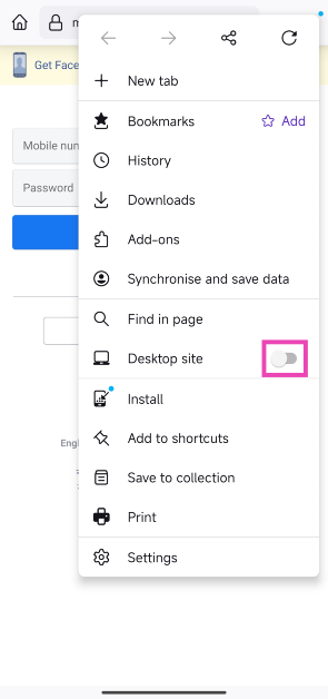4. Adım:Geçiş anahtarını açınMasaüstü sitesi.