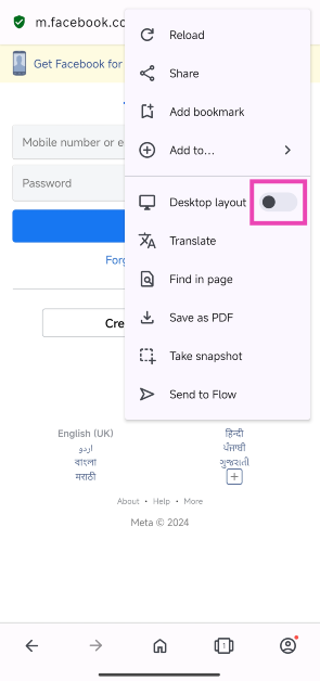 Coloros/Oxygenos tarayıcısında (Oppo ve OnePlus) Facebook Masaüstü Sürümüne Erişim