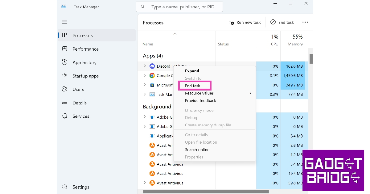 2. Adım:Discord's'a sağ tıklayınişlemve seçSon görev.