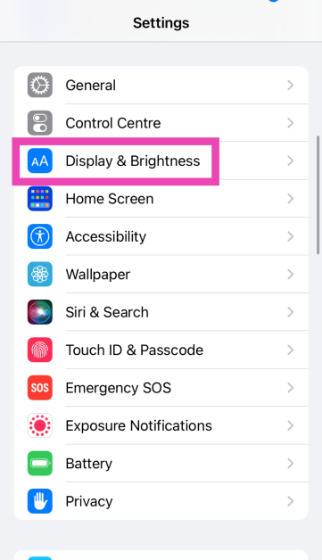 1. Adım:Gidip gelmekAyarlarve seçEkran ve Parlaklık.