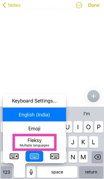 4. Adım:Ekran klavyesini tetikleyen bir uygulama açın.Uzun basın.kürekveyaemoji simgesive seçFethsy.