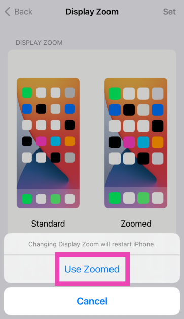 İPhone'unuzun klavyesini büyütmek içinAyarlar> Ekran ve Parlaklık> Zoom ekran> yakınlaştırılmışVe bitti.