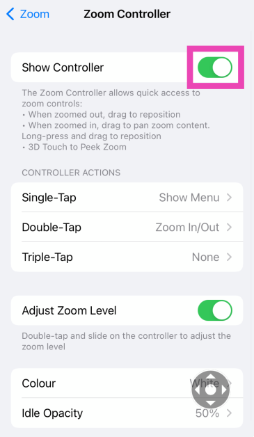 4. Adım:Aşağı kaydırın ve seçinZoom denetleyicisi.