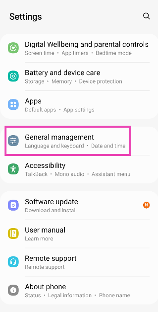 1. Adım:Gidip gelmekAyarlar, aşağı kaydırın ve seçinGenel yönetim.