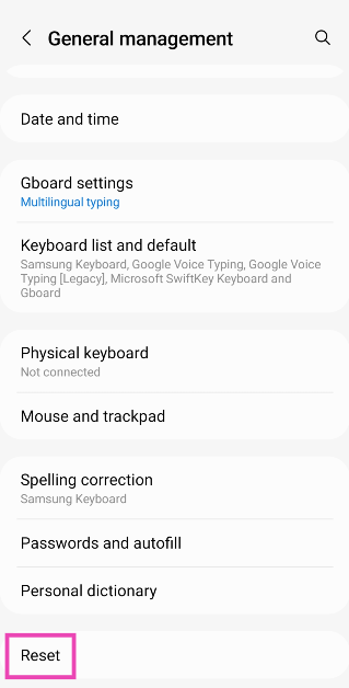 4. Adım:Aşağı kaydırın ve üzerine dokununSıfırlamak.