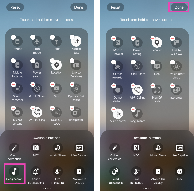 Hızlı Ayarlar menüsüne gidin, Düzenle düğmesine basın, menüye 'Şarkı Arama' döşemesini ekleyin ve 'bitti' ye basın. Bir şarkı aramak istediğinizde bu döşemeyi kullanın.