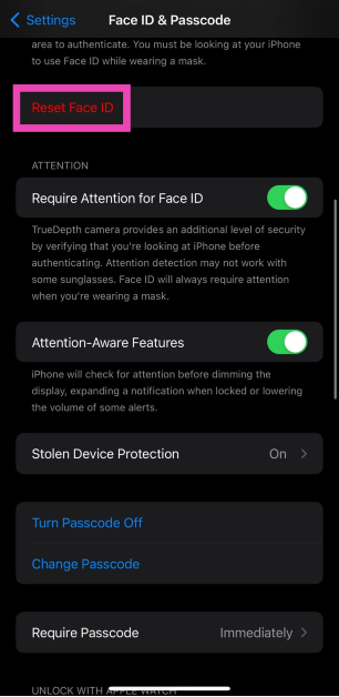 2. Adım:DenemekYüz kimliğini sıfırla.