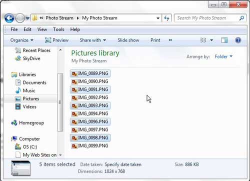 Bunu basılı tutarak yapabilirsinizCtrlKlavyenizde anahtar ve eklemek istediğiniz her resme tıklayın. Örneğin, aşağıdaki resimde, slayt gösterisine yalnızca beş klasör görüntüsünü ekleyeceğim.