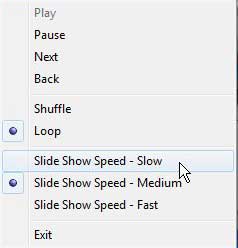 Ayrıca slayt gösterisinin hızını ayarlamak istiyorsanız veya slayt gösterisinde manuel olarak karıştırmak veya gezinmek istiyorsanız, slayt gösterisi oynatılırken bazı slayt gösterisi kontrollerine de erişebilirsiniz.