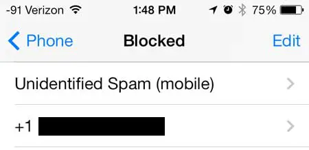 Engellenmiş telefon numaraları ve kişiler listenizi gördüğünüz son adıma geçtikten sonra, ekranın üst kısmındaki bir düzenleme düğmesine dokunabilir ve bu telefon numaralarından herhangi birini engellenen listeden kaldırabilirsiniz. Bunun, bu numaradan çağrıların, metin ve faceTime çağrılarının gelmesine izin vereceğini unutmayın, bu nedenle yalnızca bu listeden güvenilir olabilecek numaraları kaldırdığınızdan emin olun.