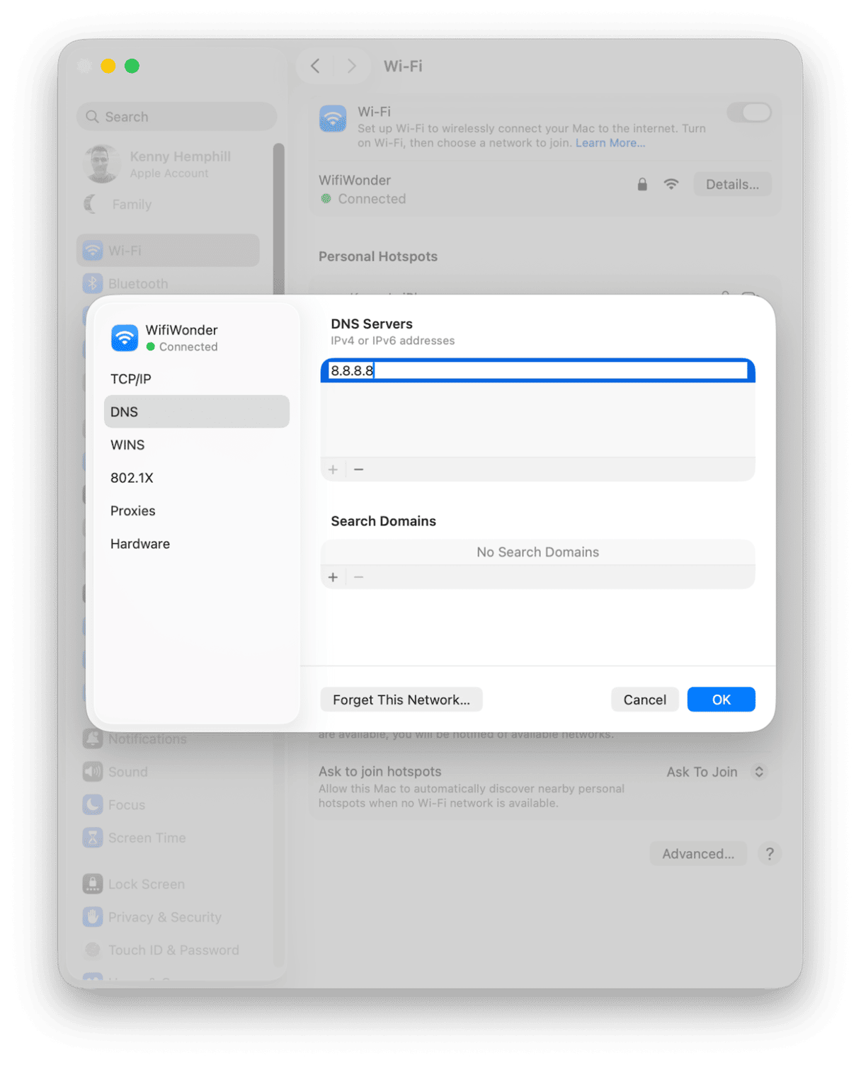Etki alanı adı sunucuları Web URL'lerini IP adreslerine dönüştürür. Mac'inizin bağlı olduğu DNS ile ilgili bir sorun varsa, internete erişimi yavaşlatabilir. Hala geniş bant sağlayıcınız tarafından yapılandırılan DNS'yi kullanıyorsanız, Google'ın ücretsiz alternatifini deneyin.