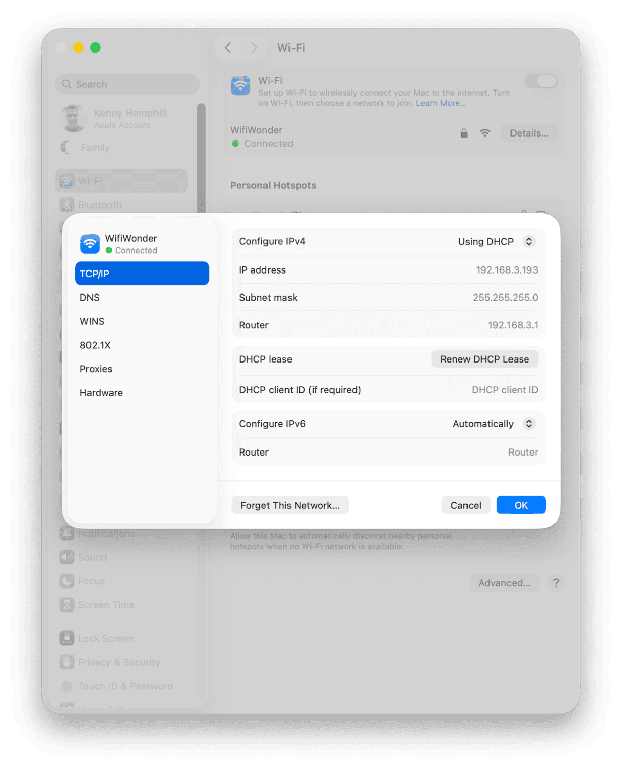 Mac'iniz DHCP kullanarak yönlendiricinizden bir IP adresi almak için ayarlanmışsa, DHCP kiralamasını yenilemek bazen sorunları çözebilir.