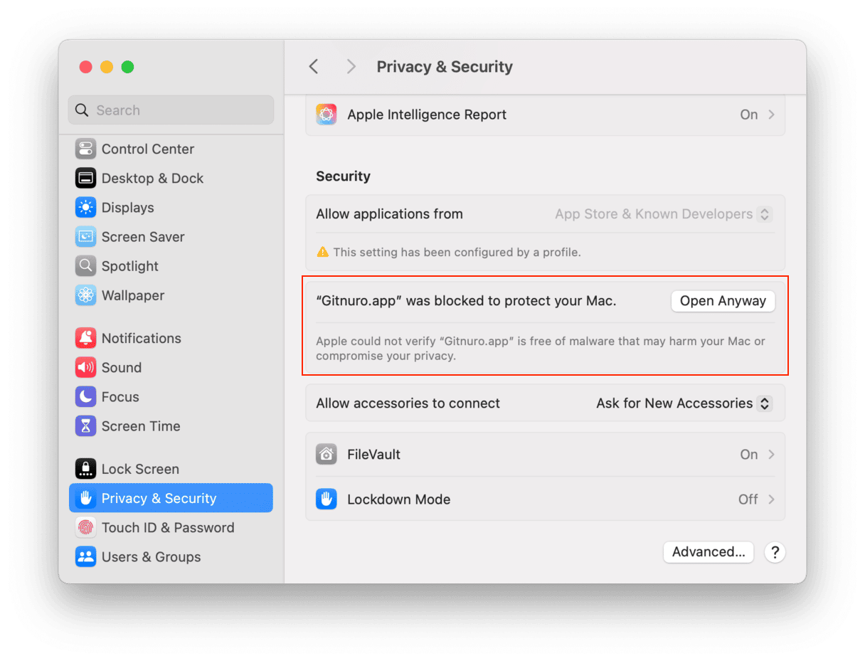 Açmaya çalıştığınız uygulama App Store'dan indirilmediyse ve güvenlik ayarlarınız yalnızca App Store'dan gelen uygulamalara izin verecek şekilde ayarlanmışsa, açılmayacaktır. Kontrol etmek için şu adımları izleyin: