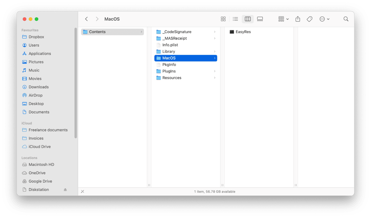 - İçindekiler klasörüne gidin ve macOS'u seçin.