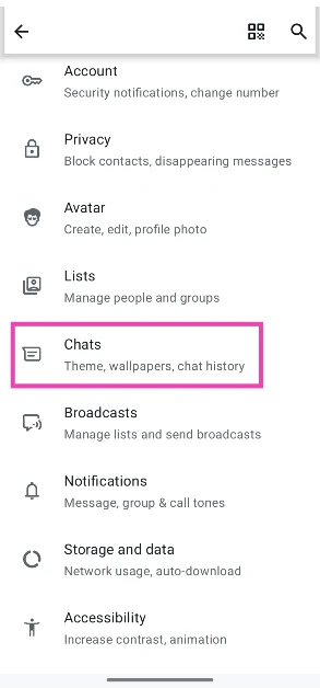 3. Adım:Aşağı kaydırın ve üzerine dokununSohbet yedekleme.