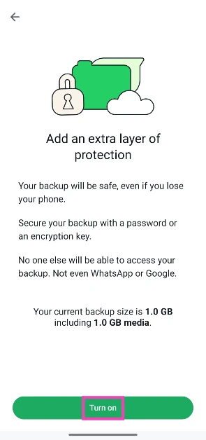 WhatsApp sohbet yedeklemenizi bir geçiş anahtarıyla şifreleyin