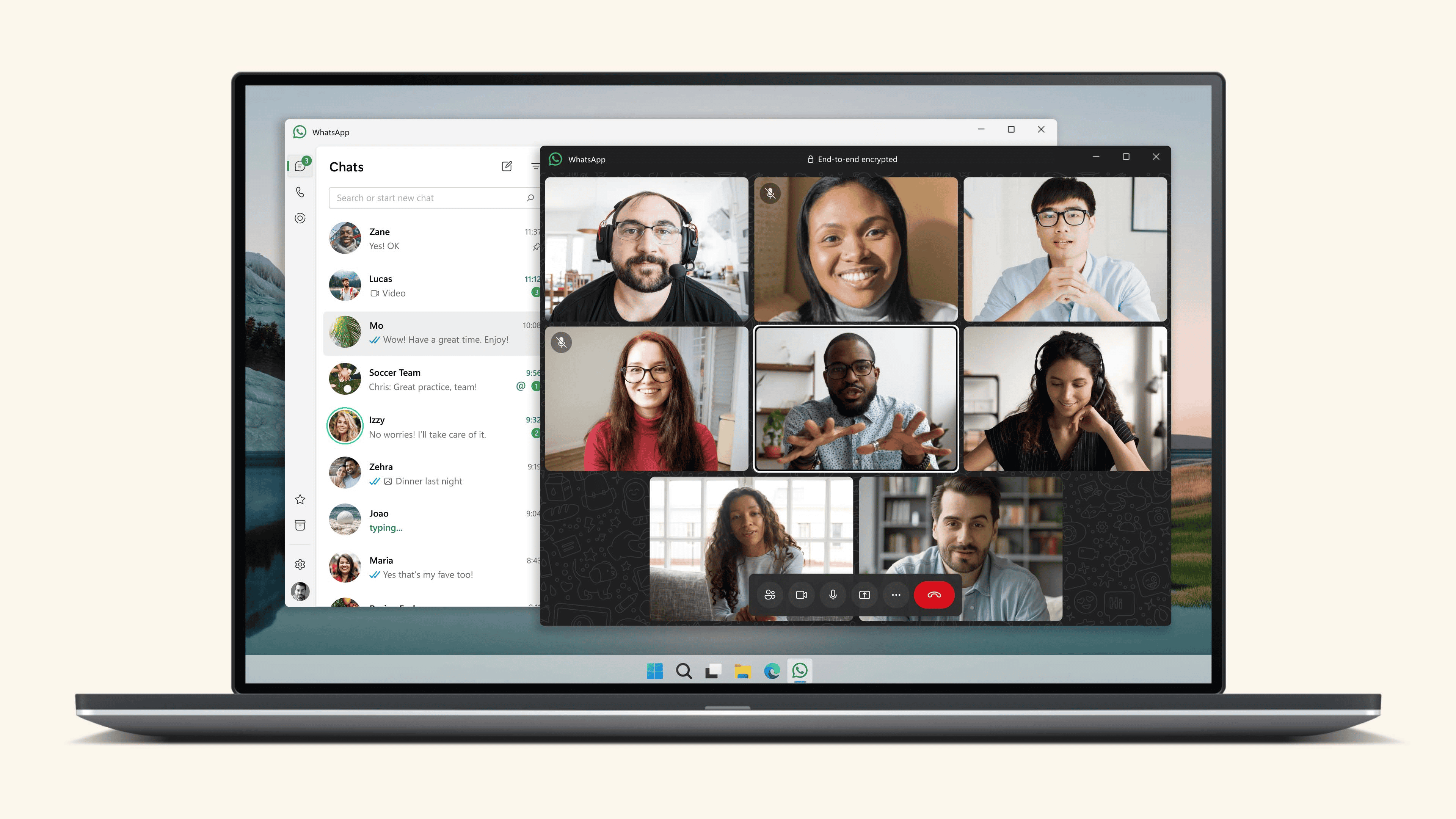 Grup çağrıları da çalışıyor. Bir grup sohbetinde, 8 kişiye kadar davet etmek için arama düğmesine tıklayın. Web sürümünde çalışmak için telefonunuzun bağlı olması gerekir.