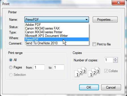 Primo PDF, kendisini normal bir yazıcı gibi yükleyecektir, bu da ona erişerek eriştiğiniz anlamına gelir.BasılıBelgeni yazdırmanız gereken web tarayıcısında veya programdaki komut. Çoğu baskı penceresi basılarak açılabilirCtrl + PProgramındayken.