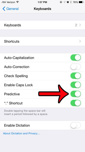 - 4. Adım: Sağdaki düğmeye dokununÖngörücüaçmak için. Aşağıdaki resimde olduğu gibi, düğmenin etrafında yeşil gölgeleme olduğunda seçenek açılır.