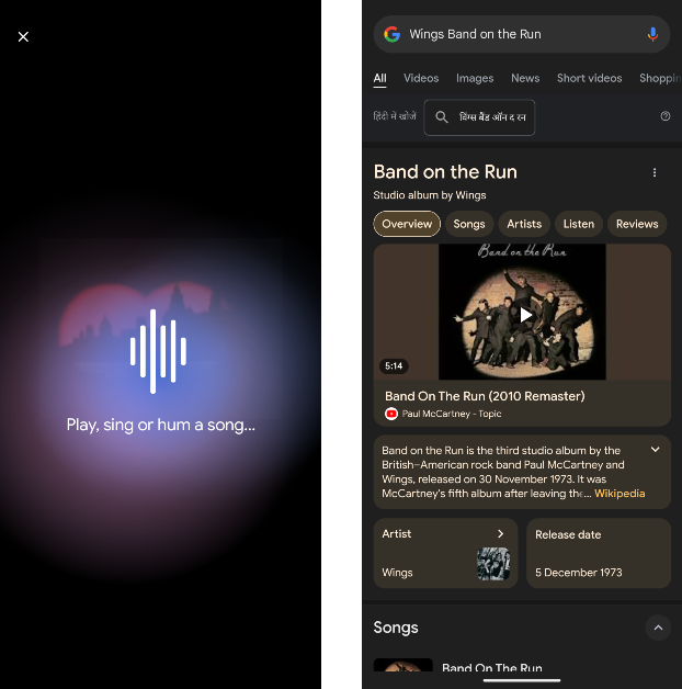 4. Adım:Telefonunuz şarkıyı birkaç saniye dinleyecek ve ardındanGoogle Arama SonuçlarıŞarkı başlığı için.
