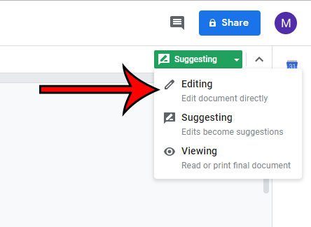 Ancak belgeyi düzenlemeye çalıştığınızı ve düzenlemelerinizin etraflarında renkli çizgiler ve bir yorum balonu olduğunu fark ederseniz, bunun neden meydana geldiğini merak ediyor olabilirsiniz. Bu, belgenin bulunduğu geçerli moddan kaynaklanmaktadır. Aşağıdaki öğreticimiz, mevcut Google Dokümanlar modunun nasıl tanımlanacağınızı ve bunu muhtemelen alışık olduğunuz standart düzenleme moduna nasıl değiştireceğinizi gösterecektir.