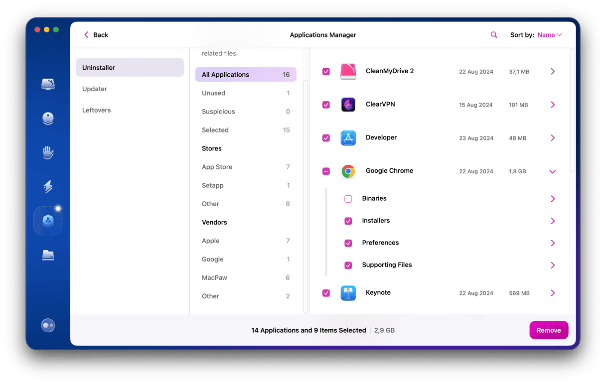 Chrome güncel olsa bile, bazen ayarlar dosyaları bozulabilir ve yavaşlamasına neden olabilir. Ayrıca Chrome'un Mac yavaşlatmasına da yol açabilir. İlk yüklediğinizde içinde bulunduğu duruma sıfırlamak, sorunu çözmenin en iyi yoludur. Chrome'u veya bu konuda herhangi bir uygulamayı sıfırlamanın en kolay yolu, CleanMyMac'ta kaldırma aracı kullanmaktır. Uygulamanın ücretsiz denemesini alın. Bunu yaptıktan sonra, Chrome'u sıfırlamak için aşağıdaki adımları izleyin: